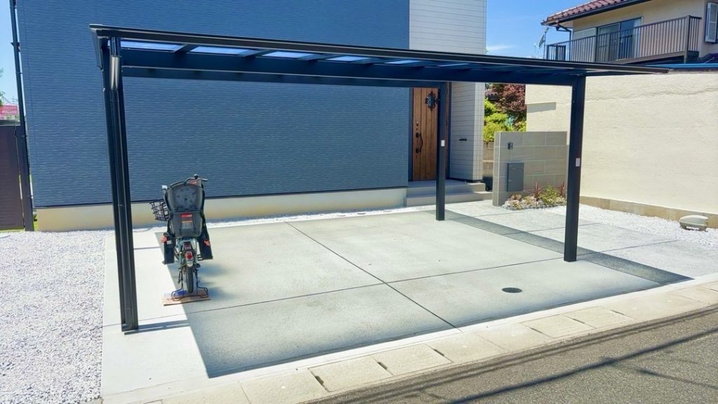 既存の駐車スペースに、採光性のある屋根材を用いたカーポートを設置。